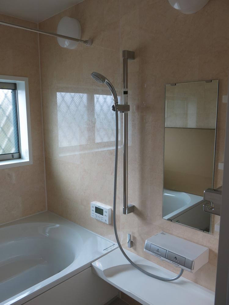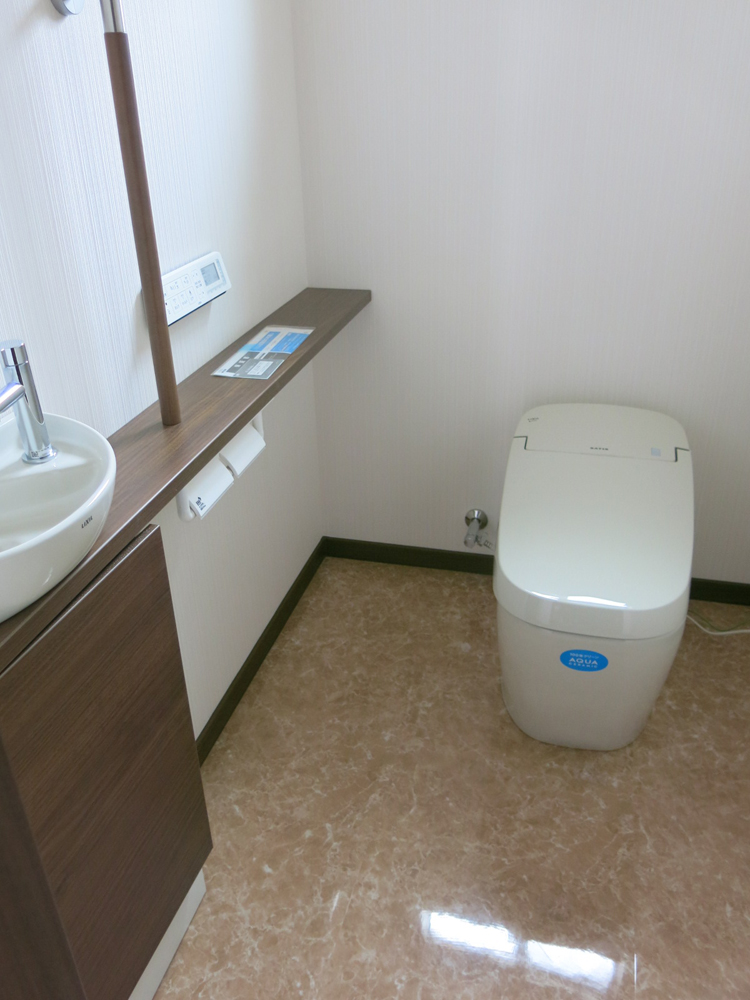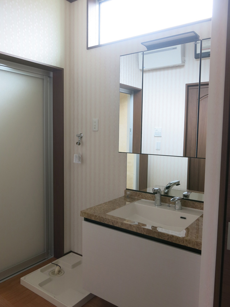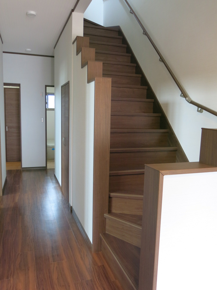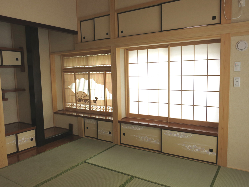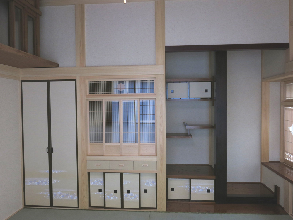 1階がLDKと和室、寝室に水廻り、2階が個室という間取りです。和室は書院、床の間、床脇、仏間、押入れ、上部に神棚がある本格的な和室です。書院には阿部興業の障子が映えます。仏間や床脇の美しさを見ると、大工さんや建具屋さんら職人さん達の質の高さを感じます。広さが十分あるので、階段や水廻りや収納に余裕を感じさせる住宅です。